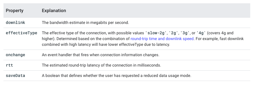 is network information API provided by browser which has information about network connection , it helps to identify low network or data saver preferences.