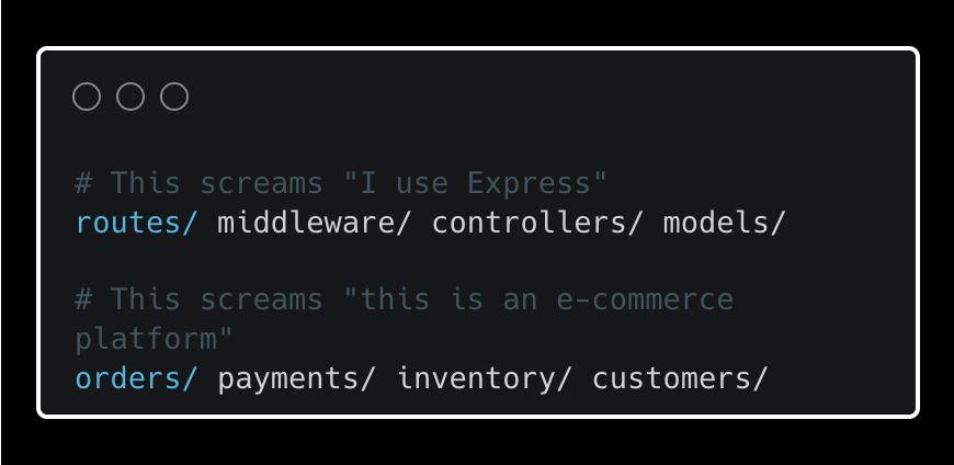 If someone opens your project and the first thing they learn is your framework choice rather than your business domain, the structure is working against you.