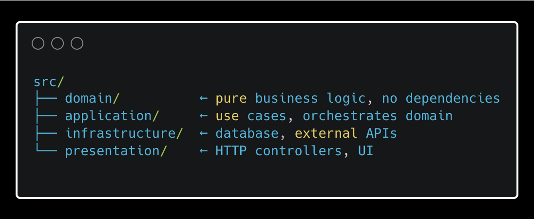 This is the pattern I reach for in Go projects. Go’s opinionated simplicity pairs well with the strict layering — the compiler will tell you if a dependency goes the wrong way.