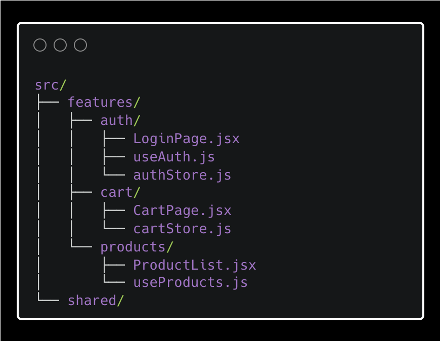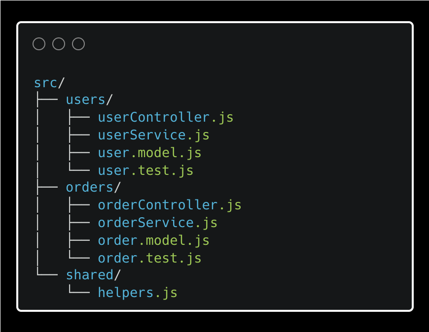 Adding a new feature means adding a new folder. A new developer can find everything related to orders in one place without a treasure hunt. When I onboarded to module-structured codebases, ramp-up time was noticeably shorter — you just open the folder for the feature you are working on and everything you need is there.