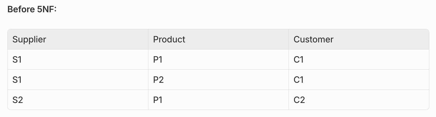 Frontend applications rarely need to consider 5NF, 6NF, or DKNF equivalents. The four principles above cover the vast majority of state management scenarios. However, complex applications might benefit from temporal state tracking (similar to 6NF) for features like undo/redo history or audit logs.