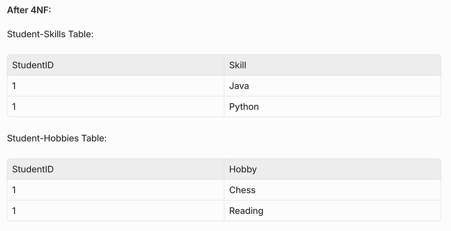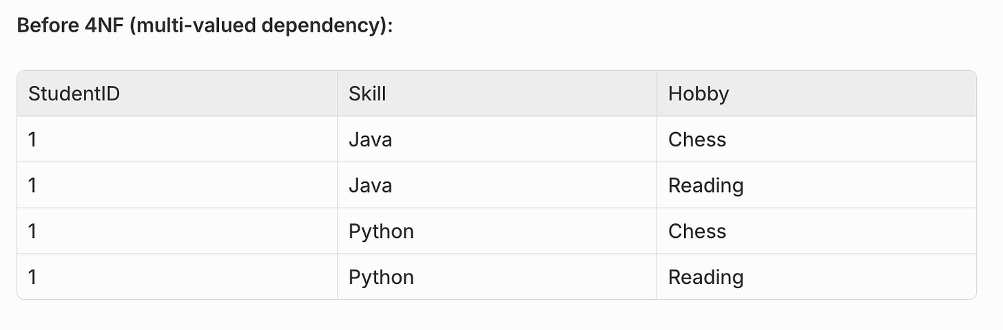 5. Fourth Normal Form (4NF)
